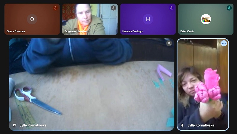 Учасники майстер-класу приборкували папір, вчилися правильно розтягувати гофру, щоб надати пелюсткам живої, випуклої форми.