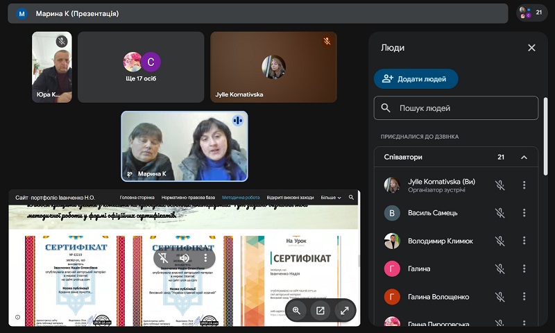 Кондратюк Марина Василівна — розповіла про власні досягнення у виховній роботі та презентувала результати підвищення кваліфікації. Її досвід є цінним внеском у розвиток методичної скарбнички нашого закладу.